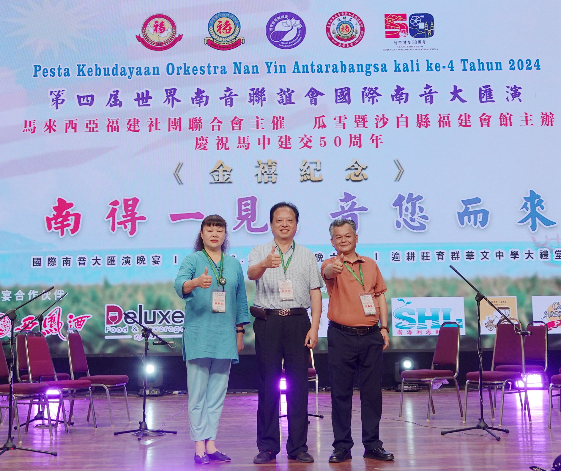 合影左起:中国华夏文化网副总编、马来西亚中华传统音乐文化节联合组委会统筹兼艺术总监林素梅;马来西亚福建社团联合总会总会长、东盟福建社团联合总会轮值主席、马来西亚中华传统音乐文化节联合组委会总顾问丹斯里林福山;马来西亚仙境集团董事经理、马来西亚中华传统音乐文化节联合组委会副主席许国栋;中国华夏文化网总编辑、马来西亚中华传统音乐文化节联合组委会主席、泉州市艺如文化传媒有限公司总经理陈家服▲