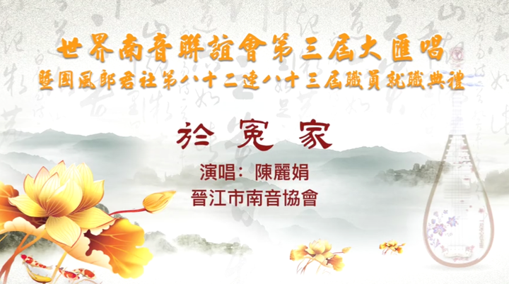 世界南音联谊会第三届大会唱暨国风郎君社第八十二连八十三届职员就职典礼——参演曲目《於冤家》演唱:陈丽娟;演出单位:中国晋江市南音协会