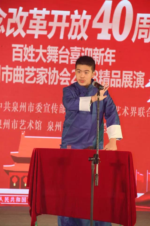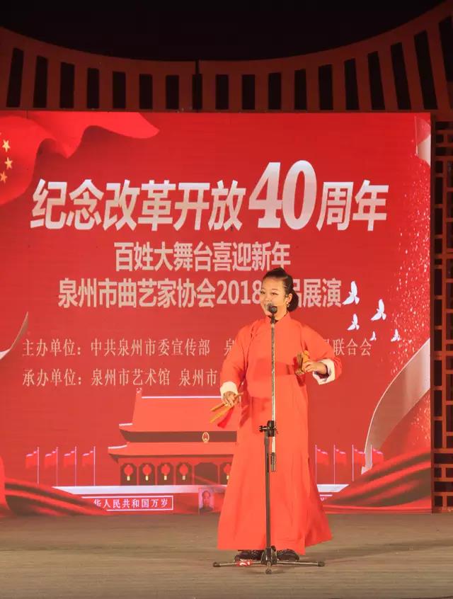 为纪念改革开放40周年,推动我市文化事业的繁荣与发展,营造积极向上、健康文明的城市氛围,充分展示文化主旋律,聚焦正能量。2018年12月30日晚7时30分,由中共泉州市委宣传部、泉州市文广新局、泉州市文学艺术界联合会主办,泉州市艺术馆、泉州市曲艺家协会承办的纪念改革开放40周年——“百姓大舞台喜迎新年”泉州市曲艺家协会2018精品展演系列文化活动在泉州市区府文庙文化广场拉开帷幕!中国华夏文化网总编辑陈家服受邀参加活动并做专场采访报道。
